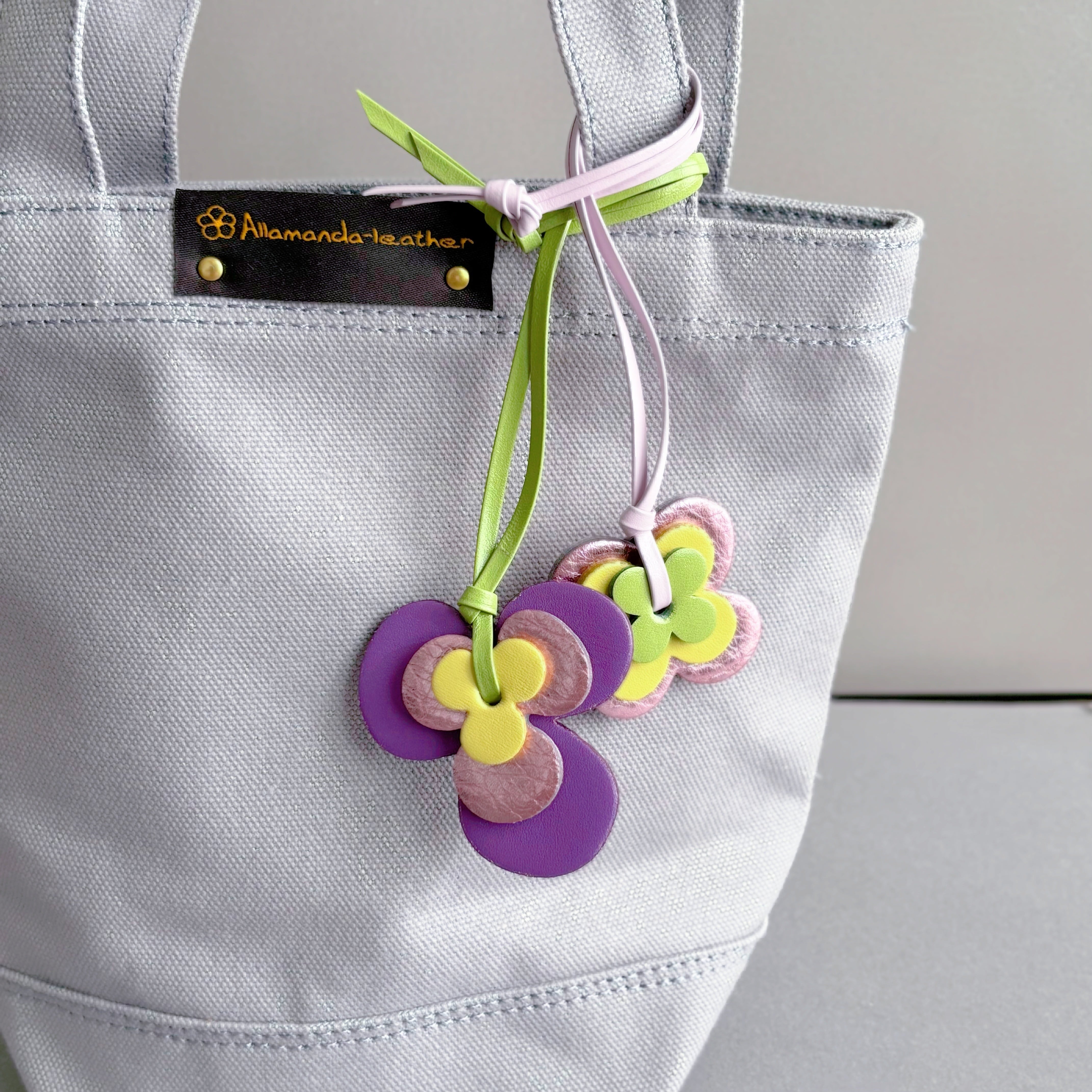 パンジーとクローバーをイメージしたフラットタイプのバッグチャーム2個セット商品です。