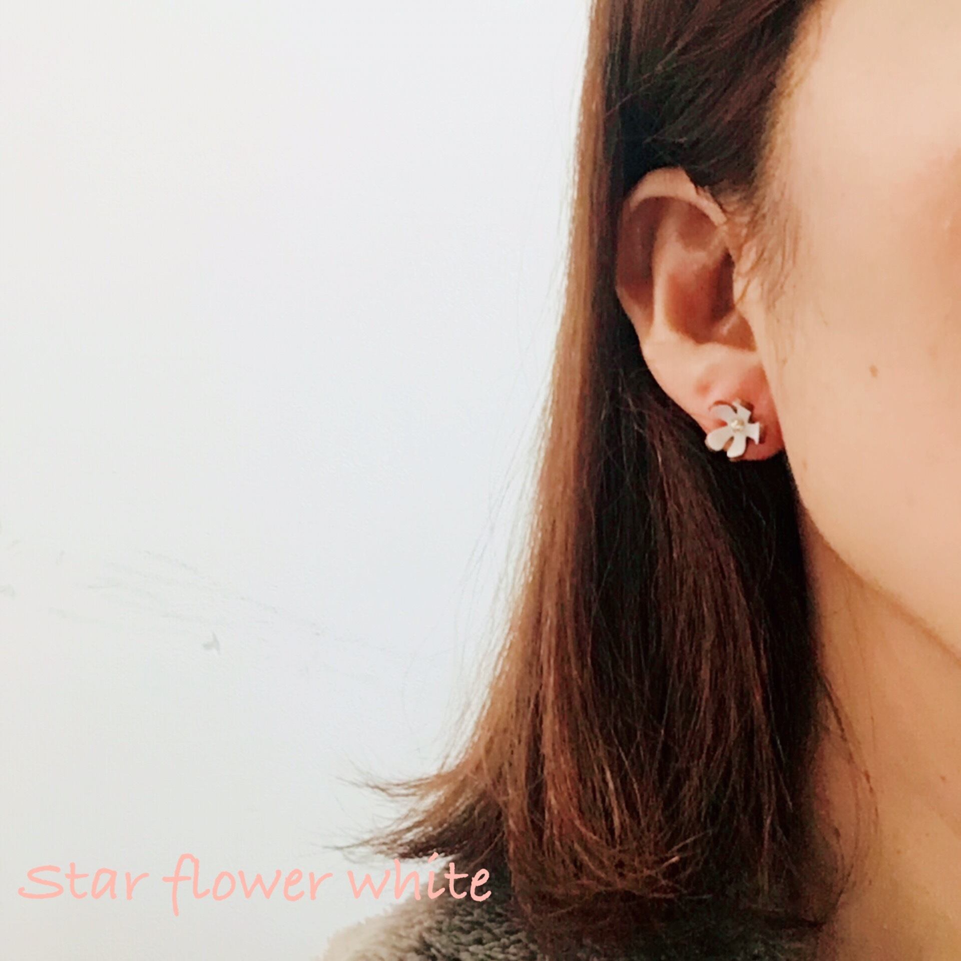 異なった形の本革を使ったお花ピアスです。 《内容》 Mini viola(ラベンダー) Annabel(ブルー) Star flower(ホワイト)