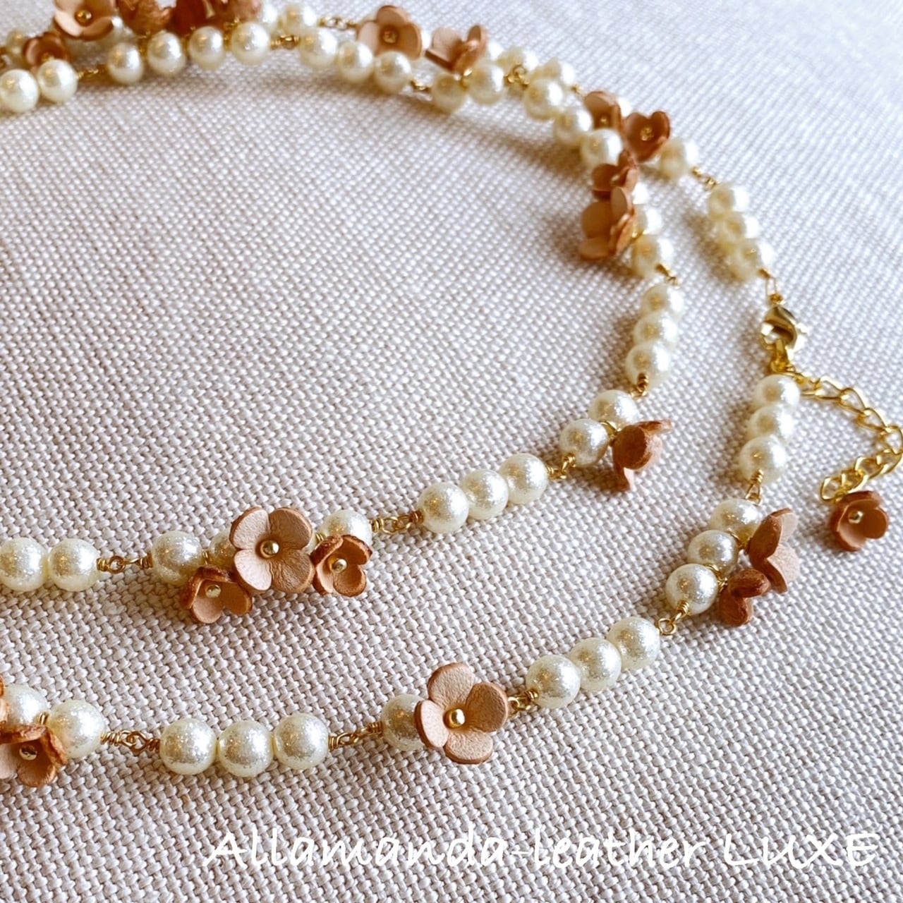 《素材》牛革・真鍮(繋いでいるワイヤー部分のみ)・シャイニーパール