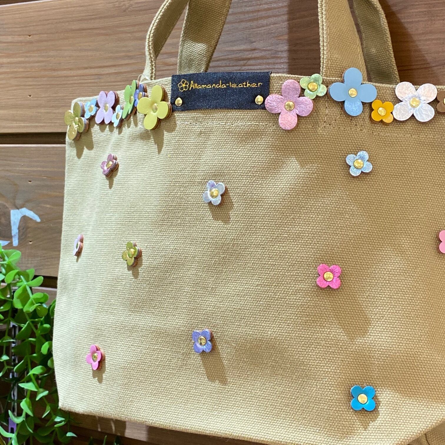 【素材】トートバッグ:コットン100%(中国製)革花パーツ:牛革(日本製)