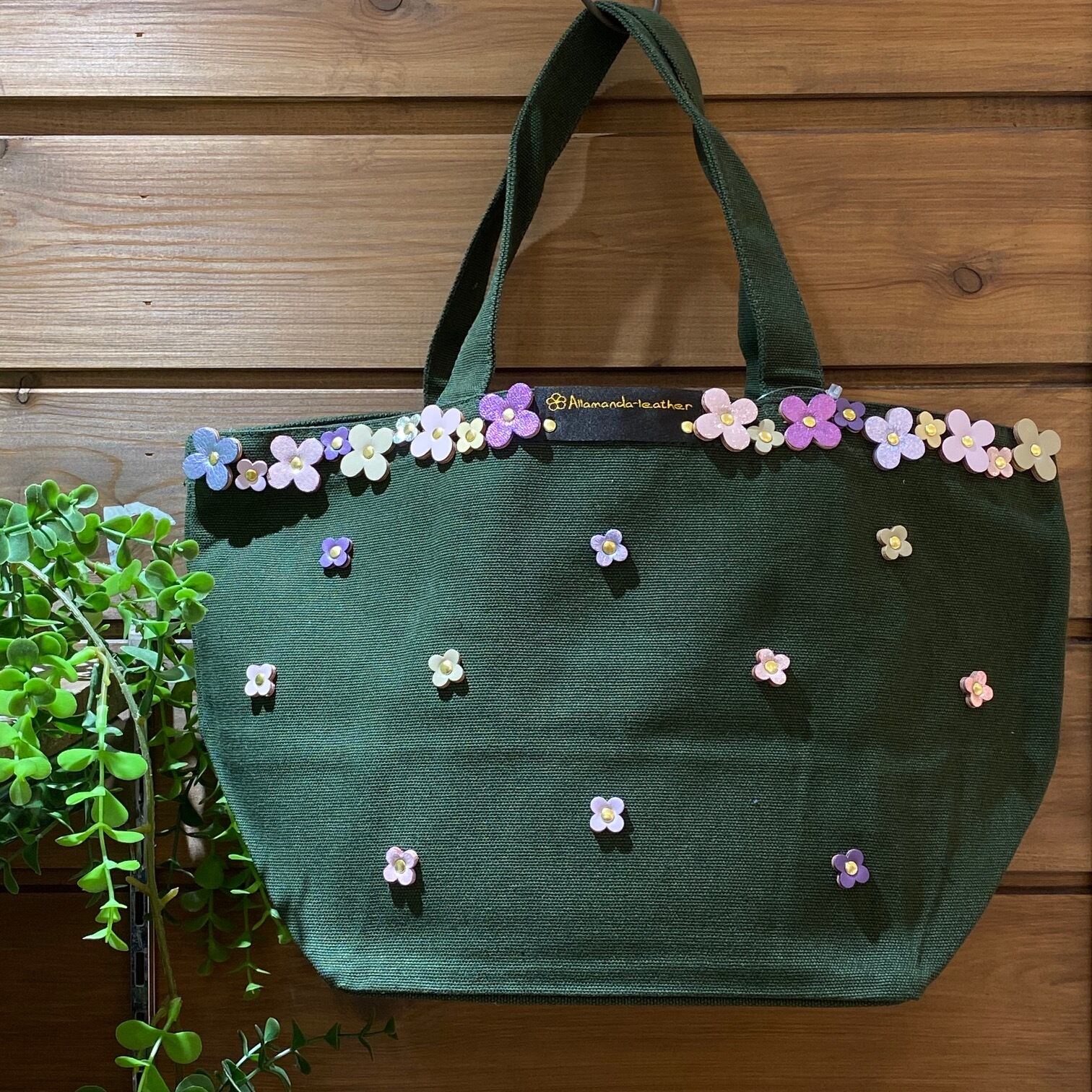 【素材】トートバッグ:コットン100%(中国製)革花パーツ:牛革(日本製)