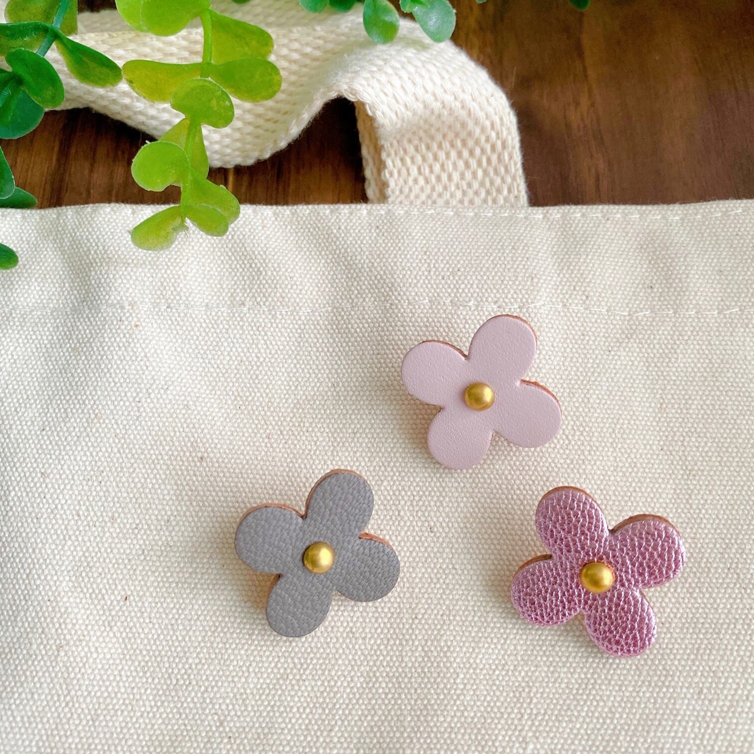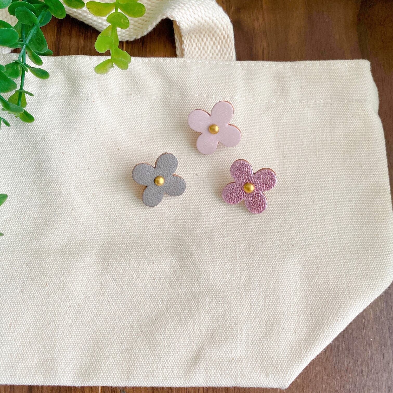 【好きな場所に付けられる】No.628クローバーピンブローチ3個セット(薄ピンク・ラメ薄ピンク・グレー)
