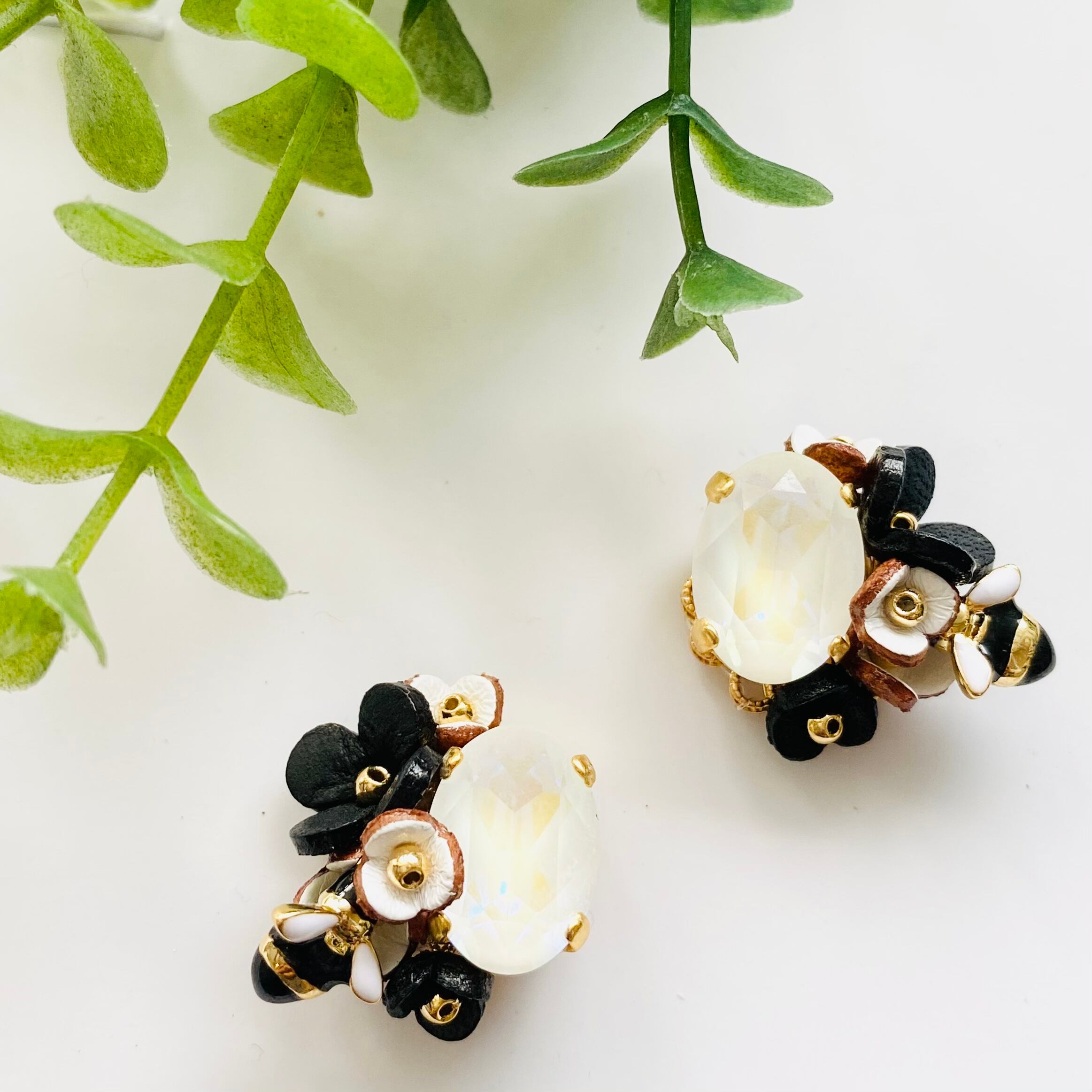 【ピアスイヤリング】ミツバチピアス/イヤリング(モノトーンカラー)
