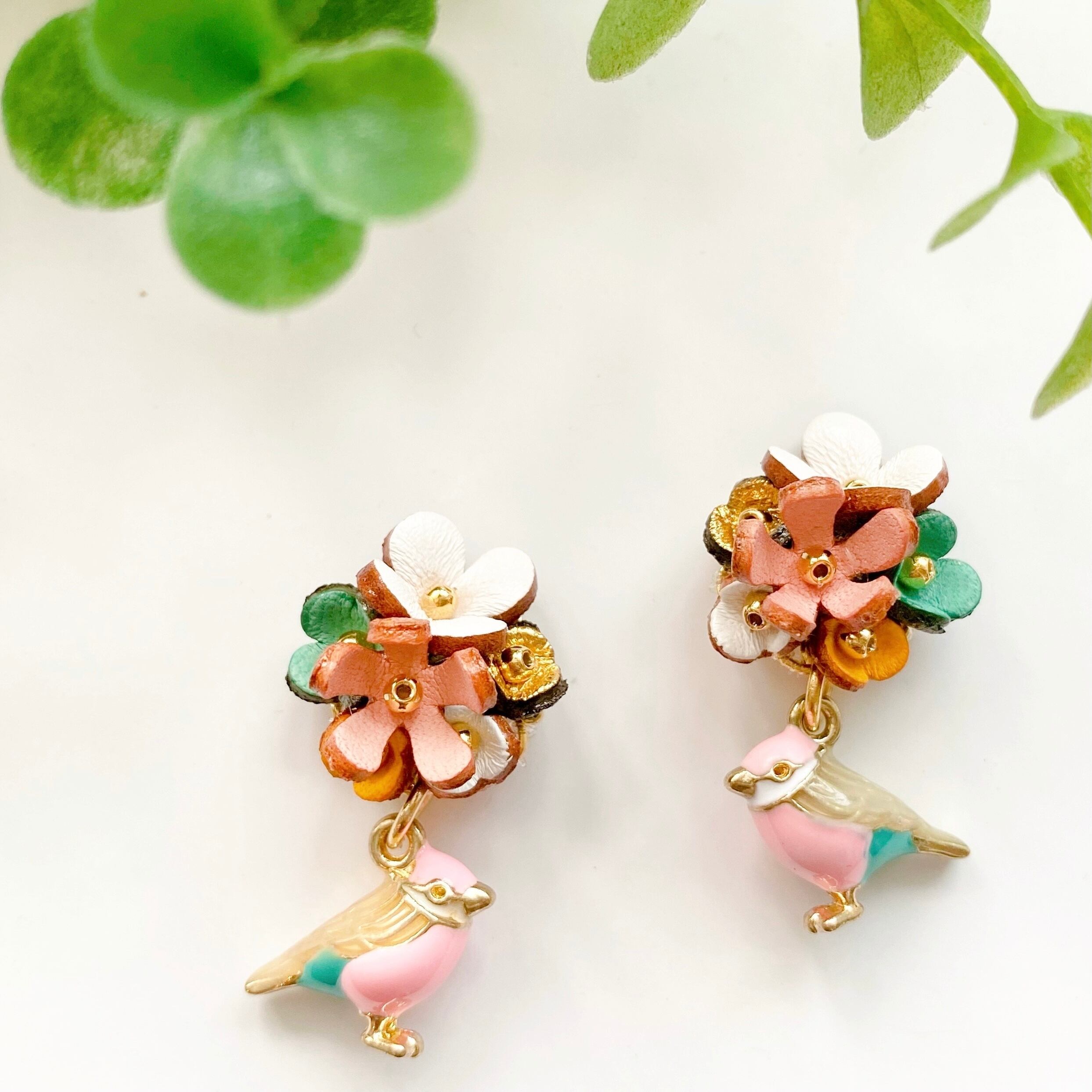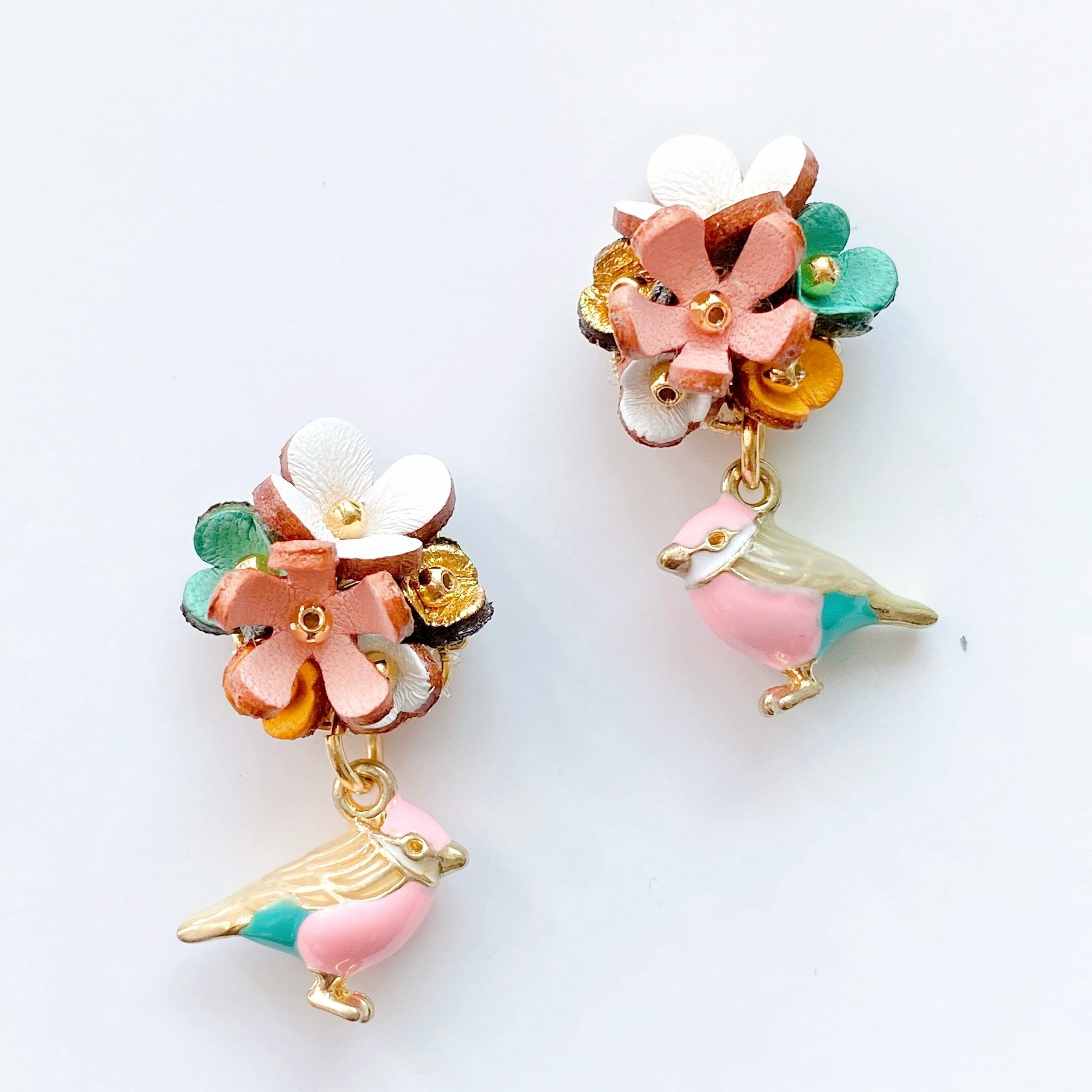 【ピアスイヤリング】Swing bird ピアス/イヤリング(ベビーピンクカラー)