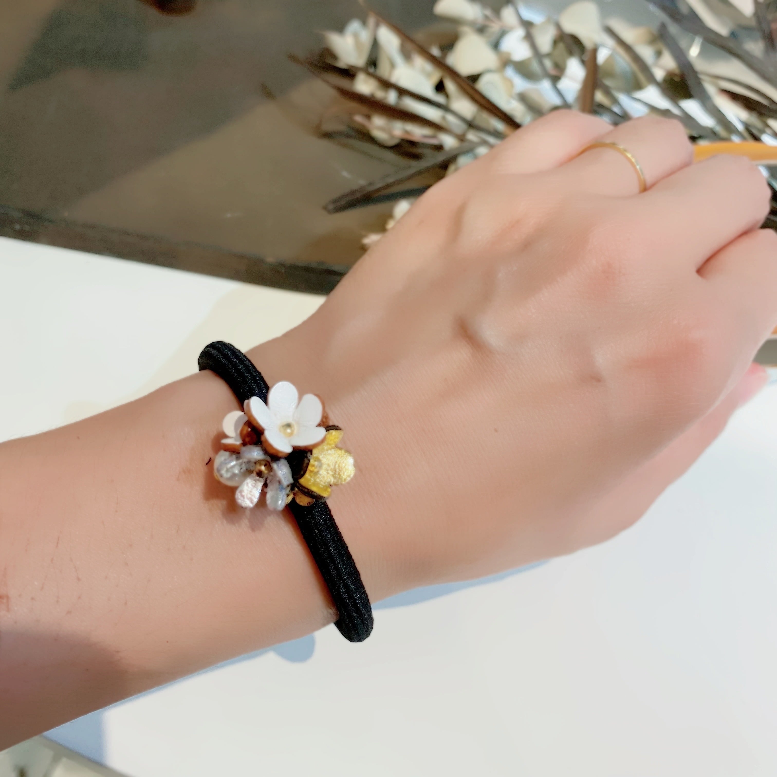 ヘアゴムとして以外に腕に付けたりバッグの持ち手に巻き付けても可愛いです♥