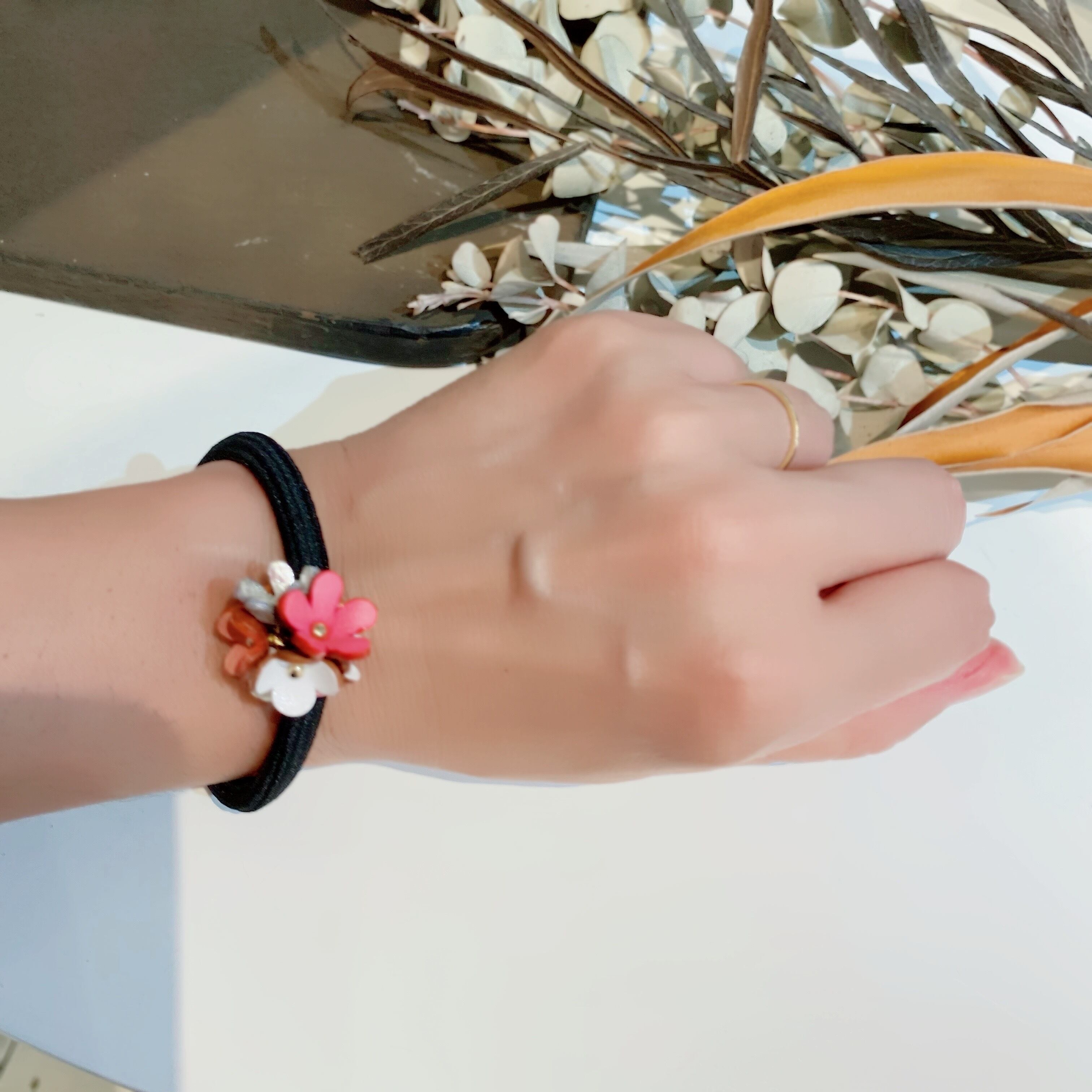 ヘアゴムとして以外に腕に付けたりバッグの持ち手に巻き付けても可愛いです♥