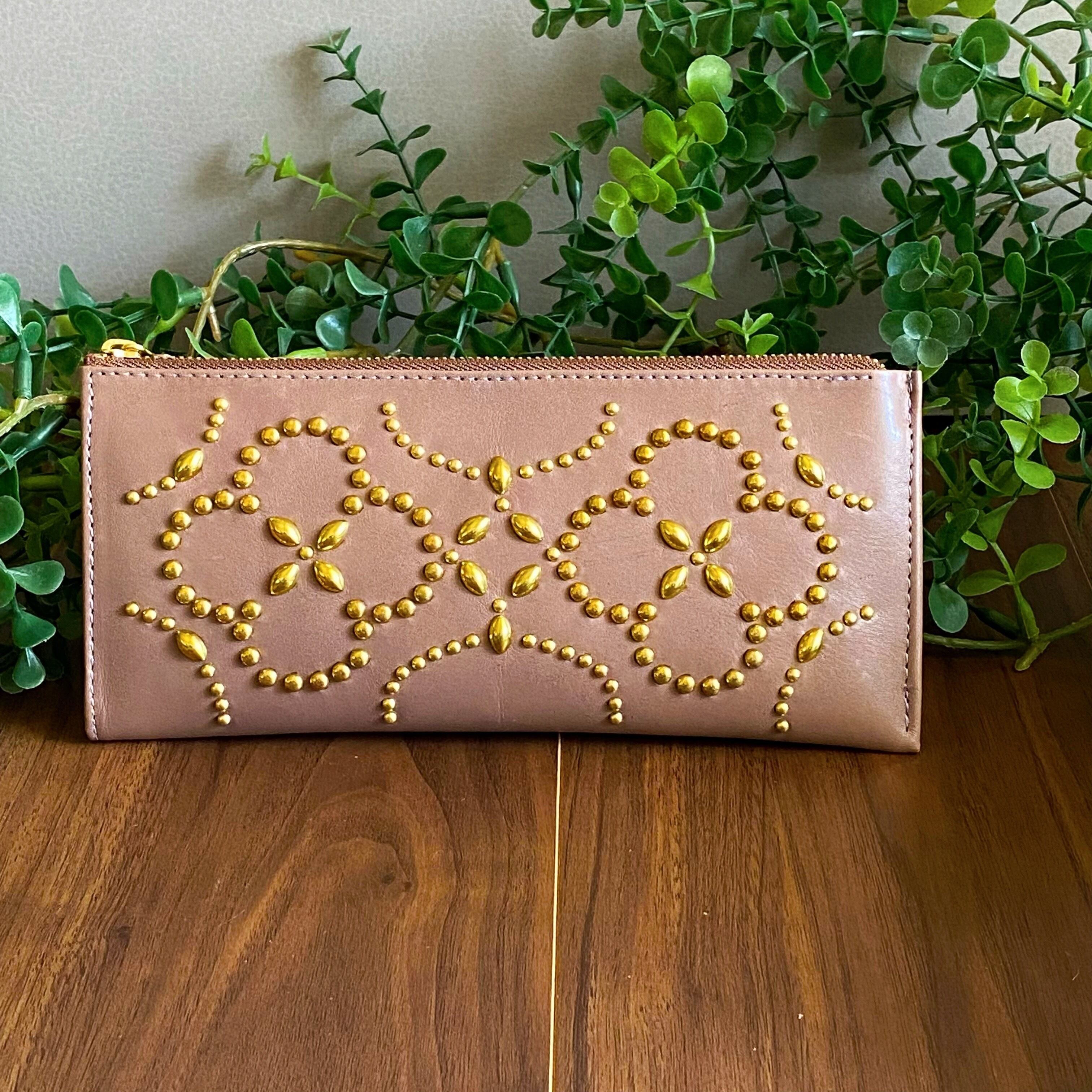 【SALE PRICE ¥22,000→¥17,600】フラワースタッズ ロングウォレット(革色サンドブラウン・金具色ゴールド)