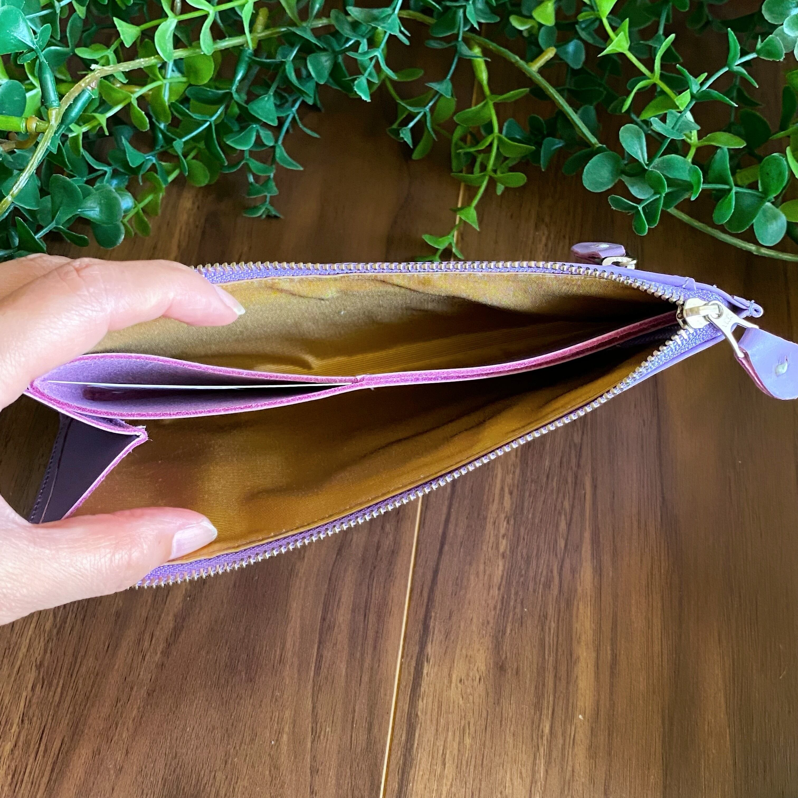 【SALE PRICE ¥22,000→¥17,600】フラワースタッズ ロングウォレット(革色ラベンダーパープル・金具色シルバー)
