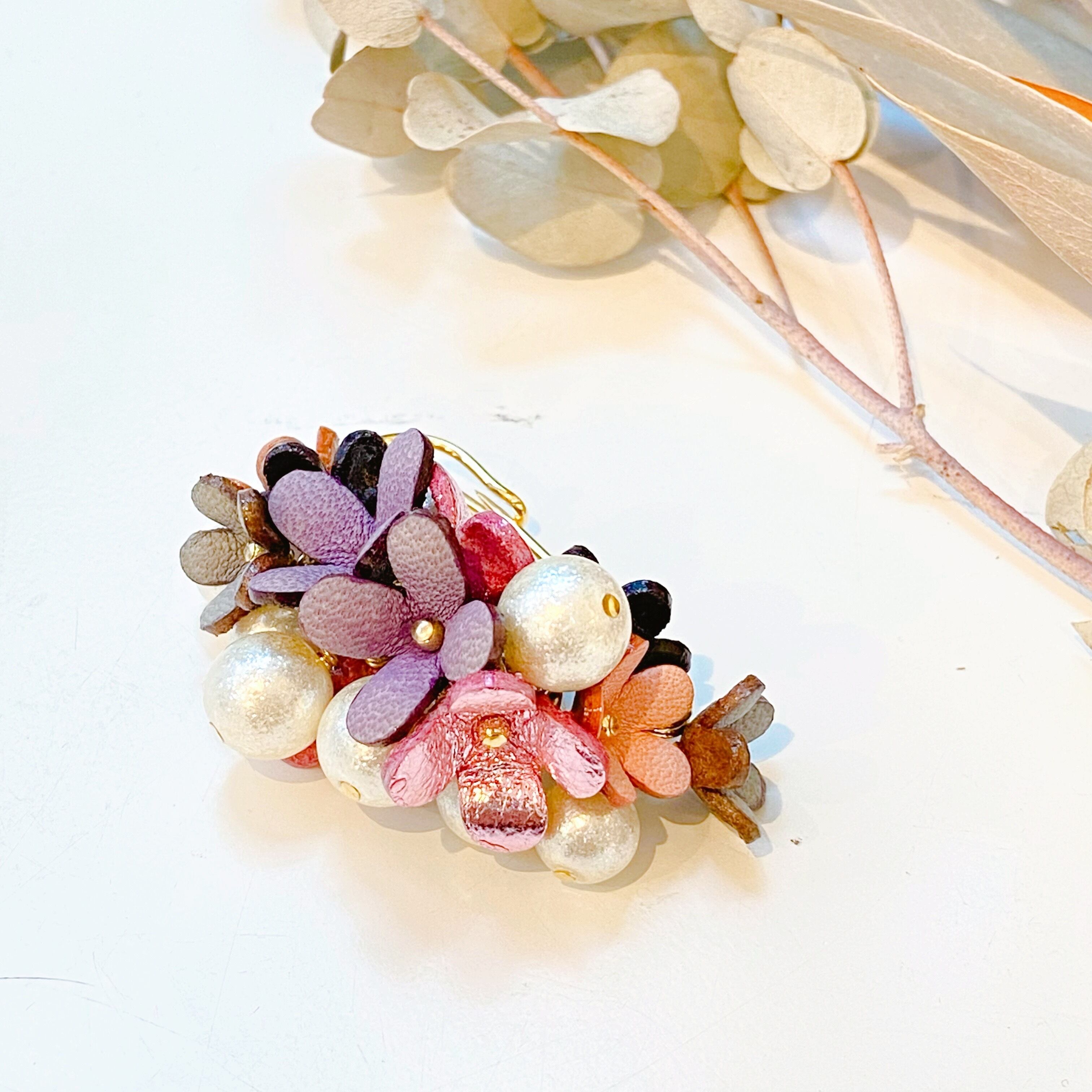 レザーフラワーアクセサリー•パールアクサリー•レザーグッズ販売