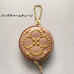 丸型ポーチにAllamanda-leatherのシンボルデザインの