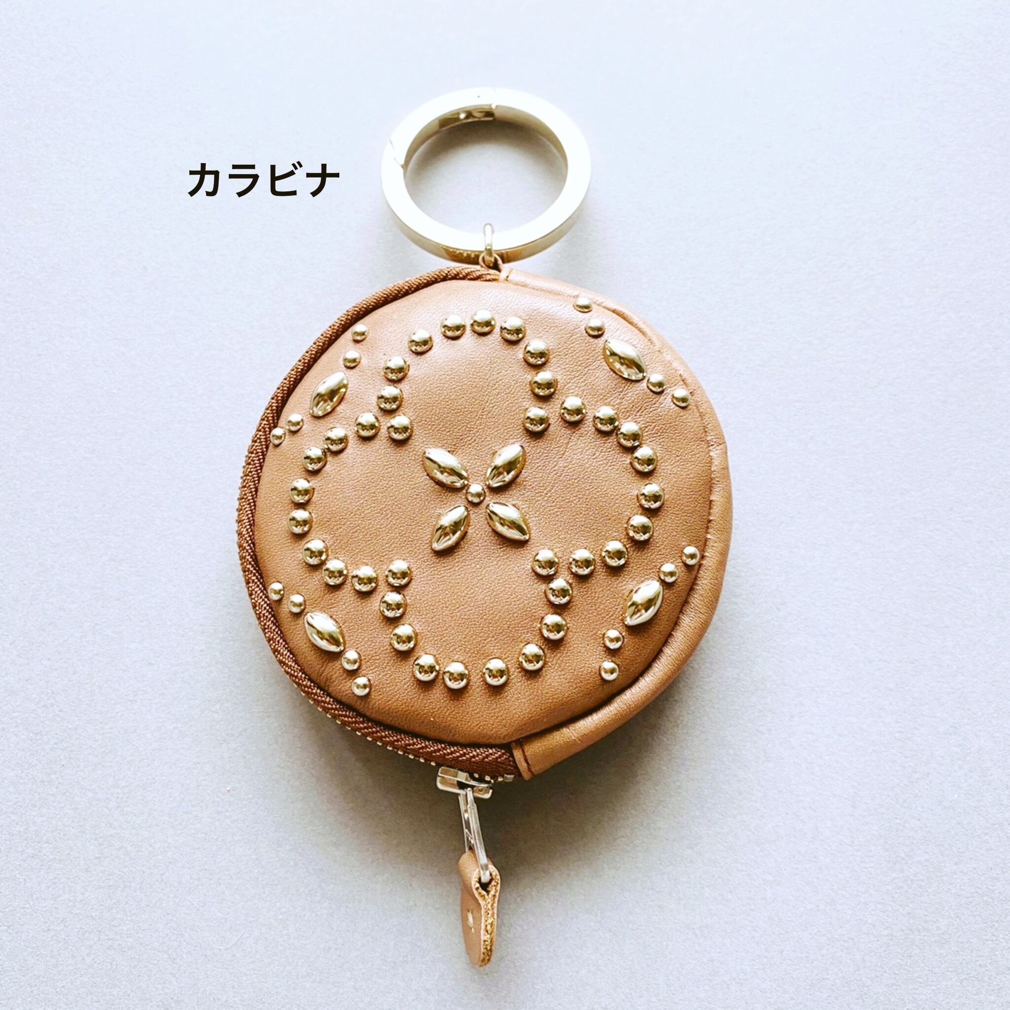 【金具が選べる】レザーラウンドポーチ(カフェオレ/シルバースタッズ)