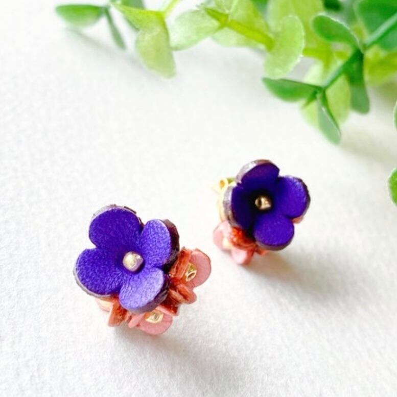 アナベルブーケピアス•イヤリング(花色パープル/ピンク)