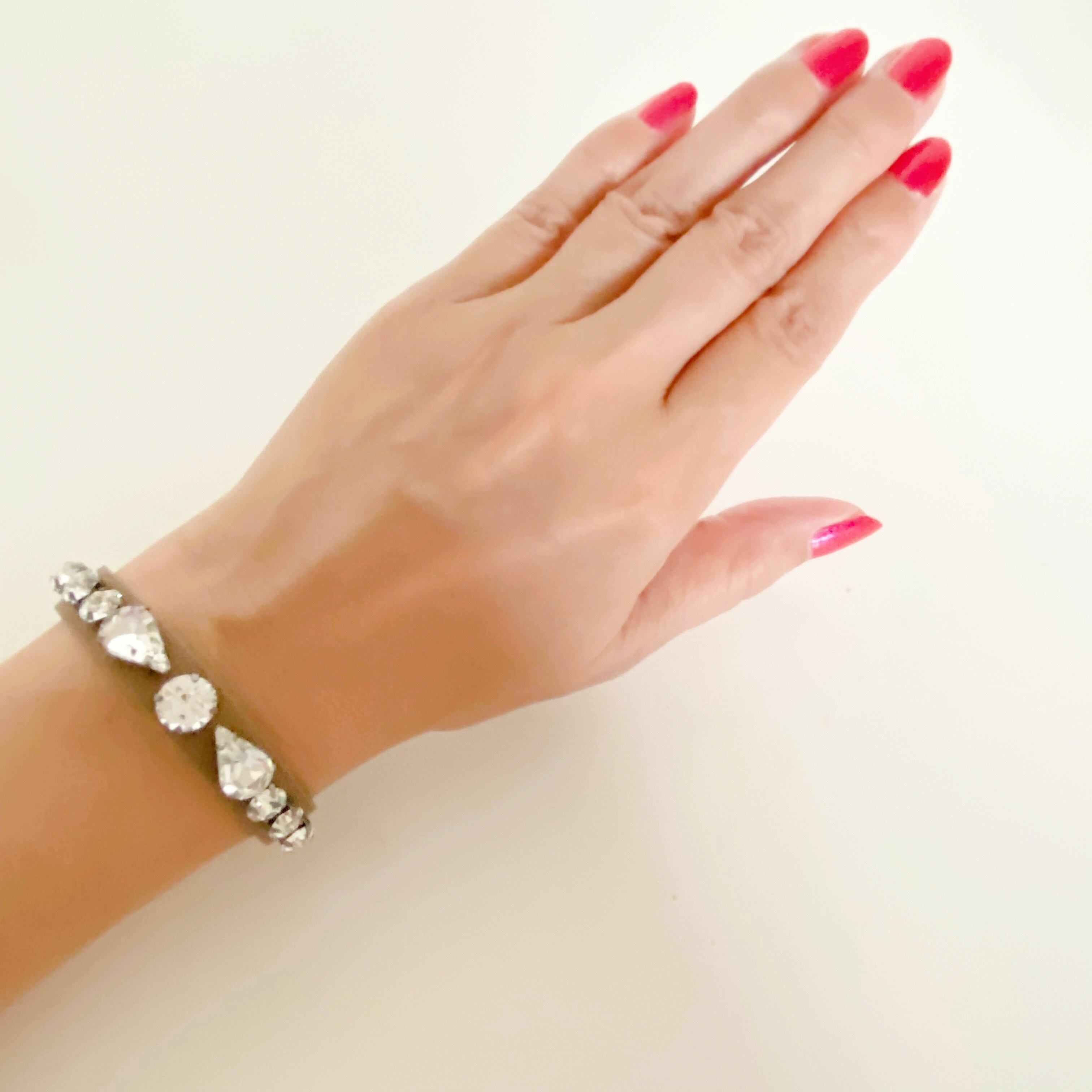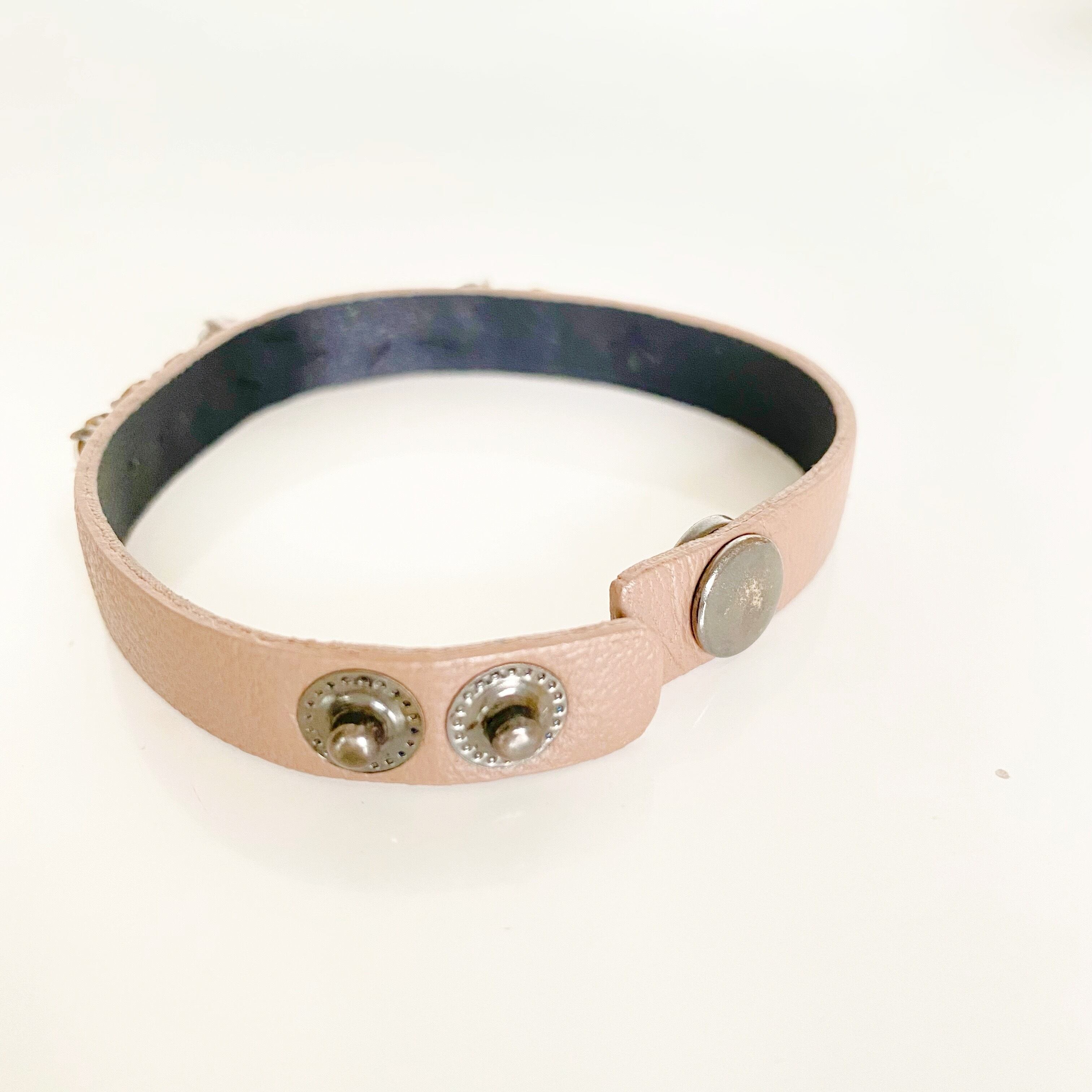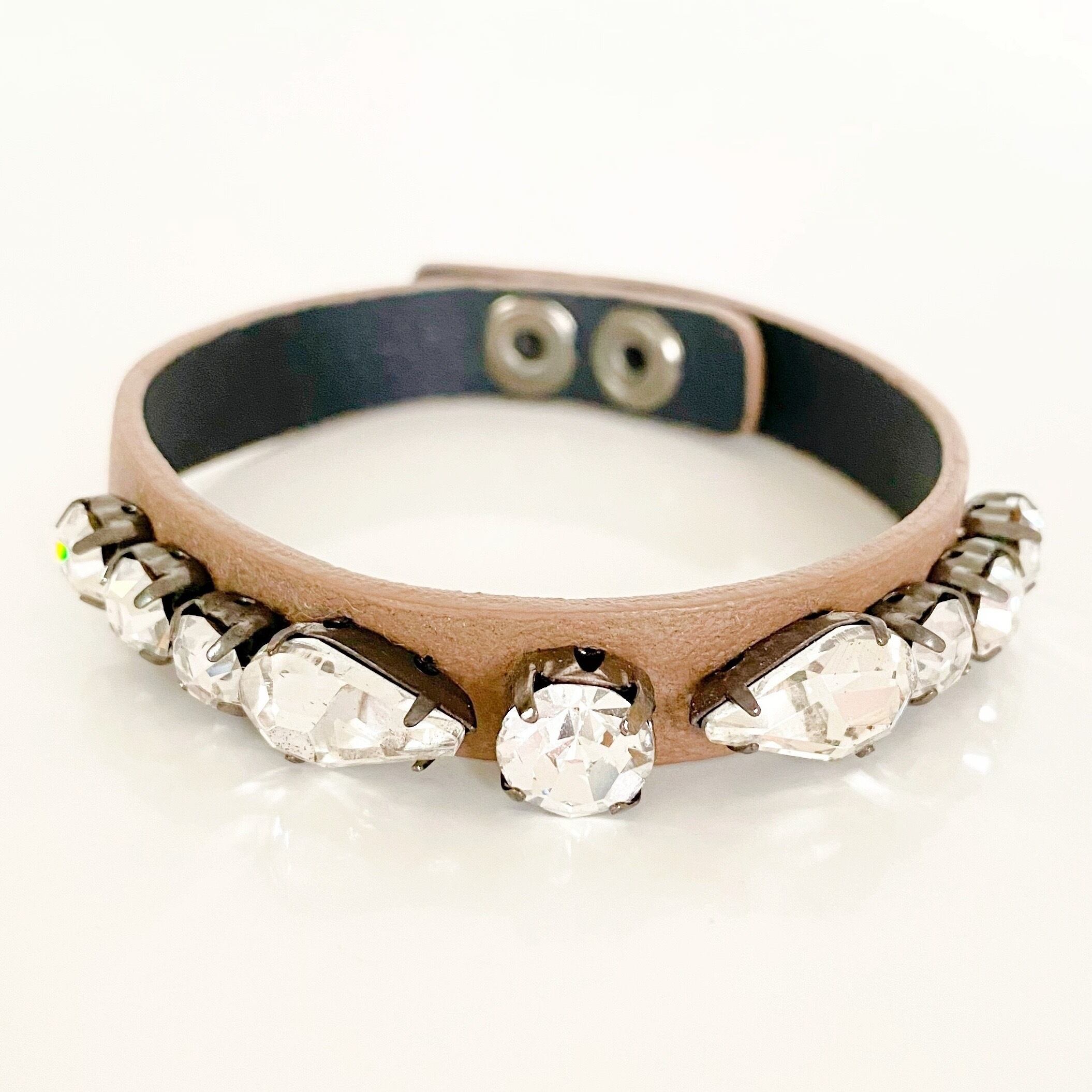 革とクリスタルの組み合わせが新鮮なブレスレット。