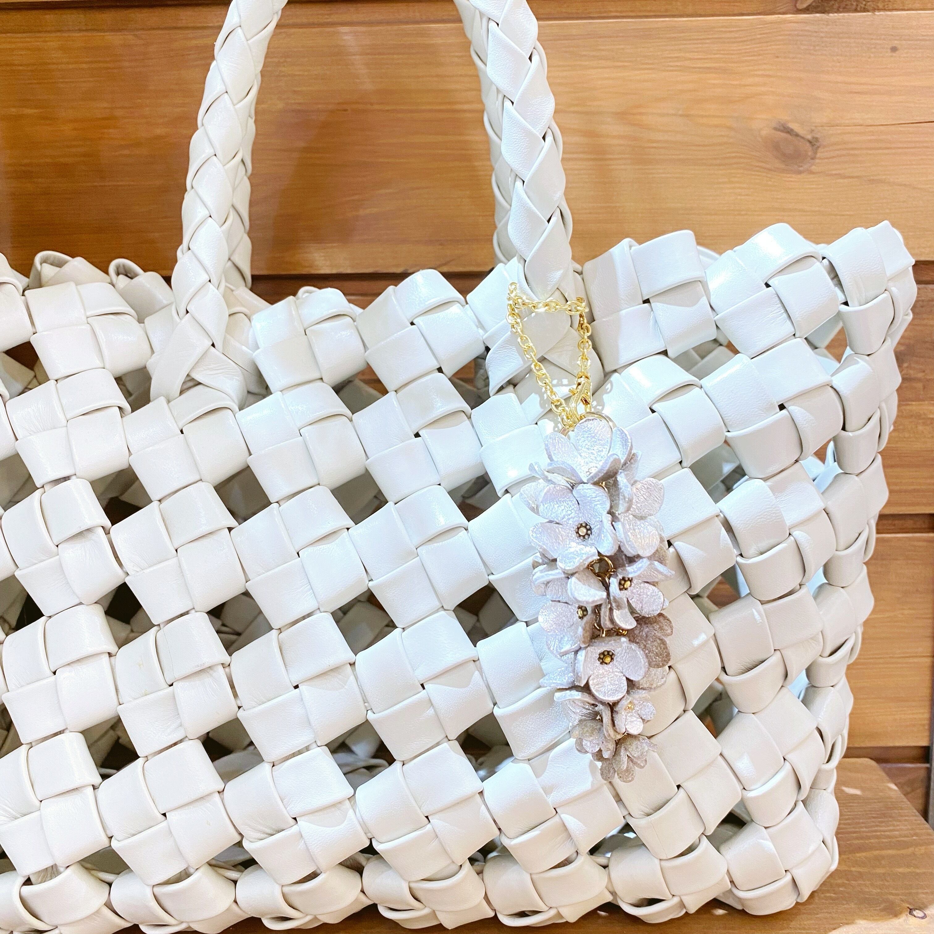 【サンプル品1点物】房型バッグチャーム(花色シルバーカラー)