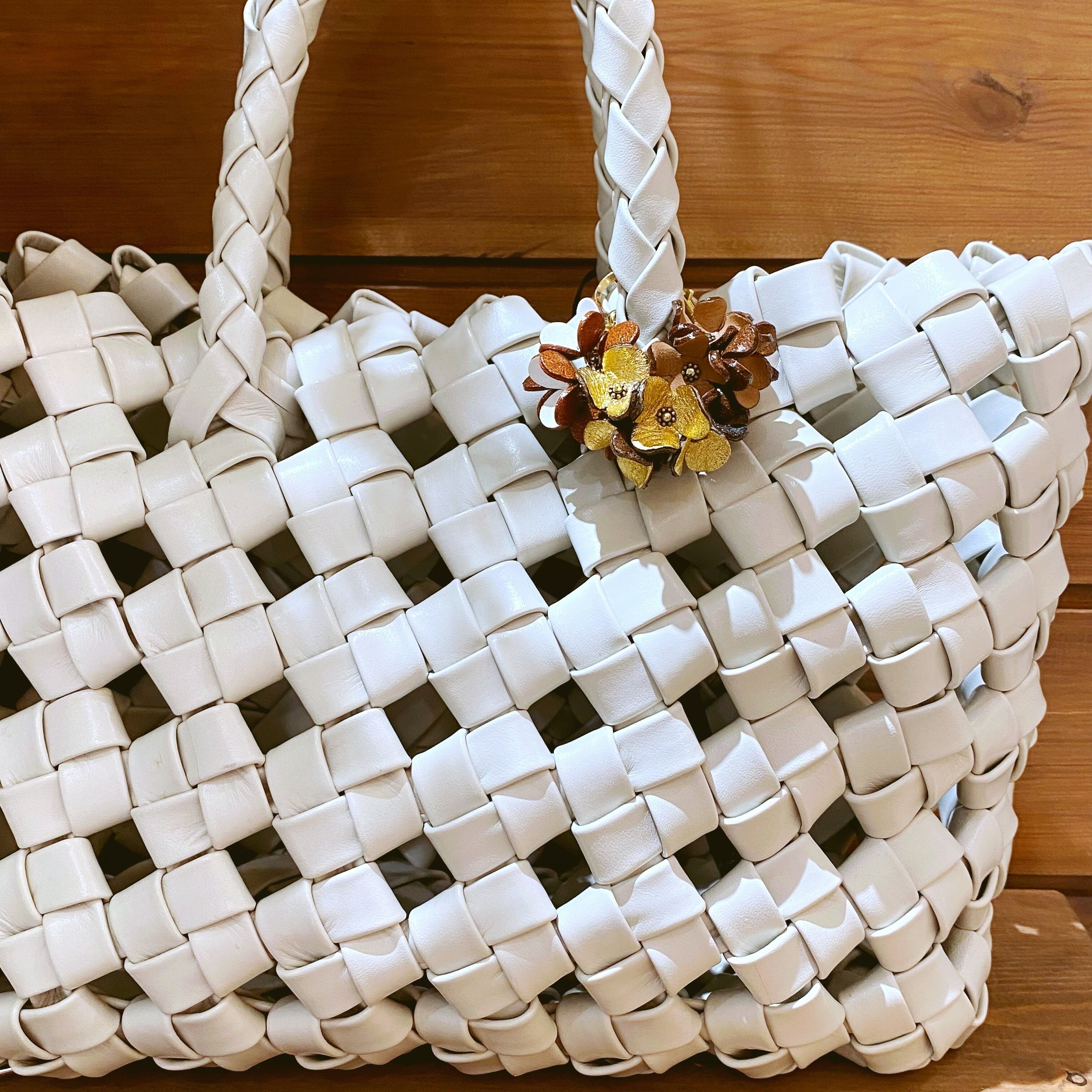 【アウトレット価格】 ¥3,960→¥2,970 Miniフラワーレイ2Wayバッグチャーム(花色ブラウン・ホワイト・ゴールド)