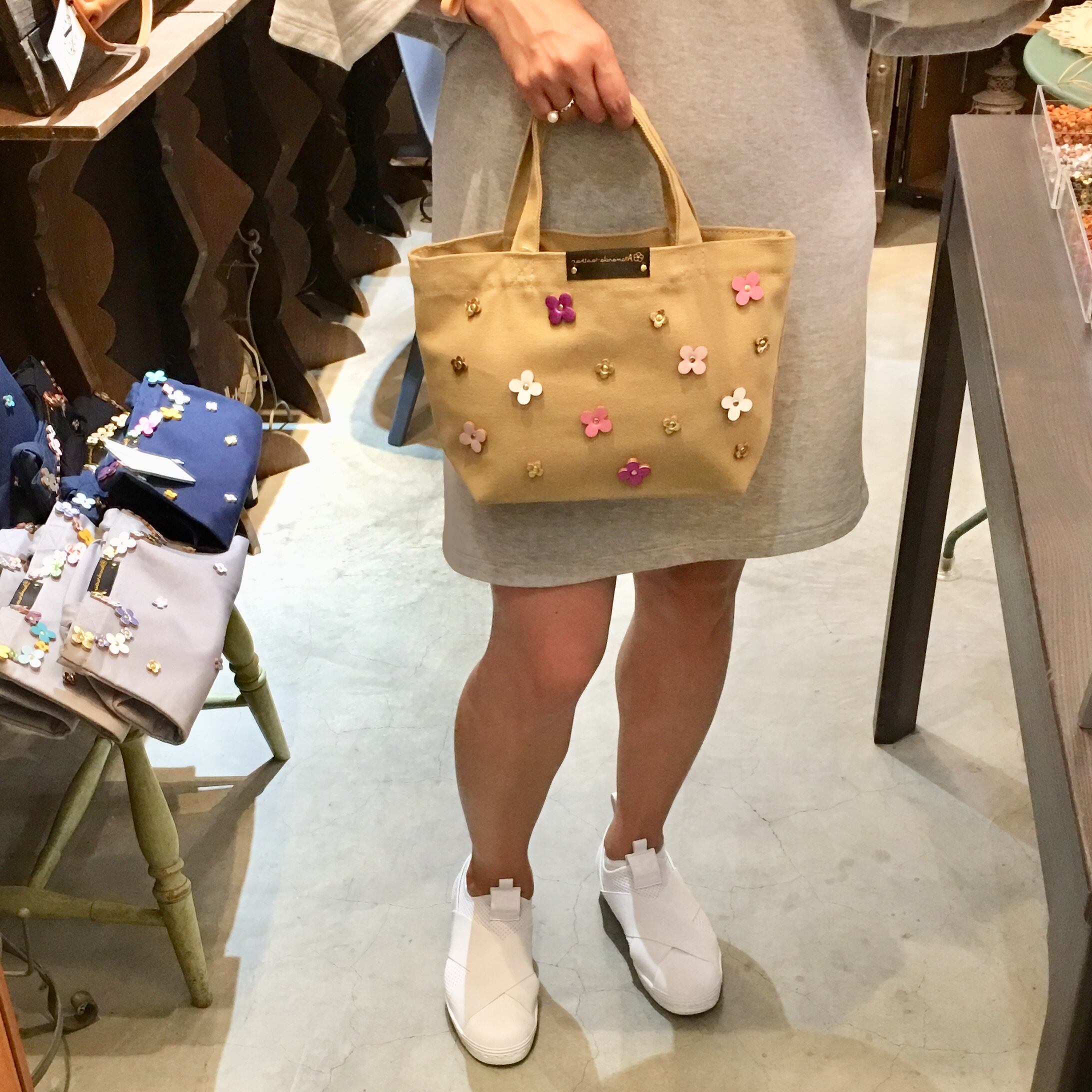 【素材】トートバッグ:コットン100%(中国製)革花パーツ:牛革(日本製)
