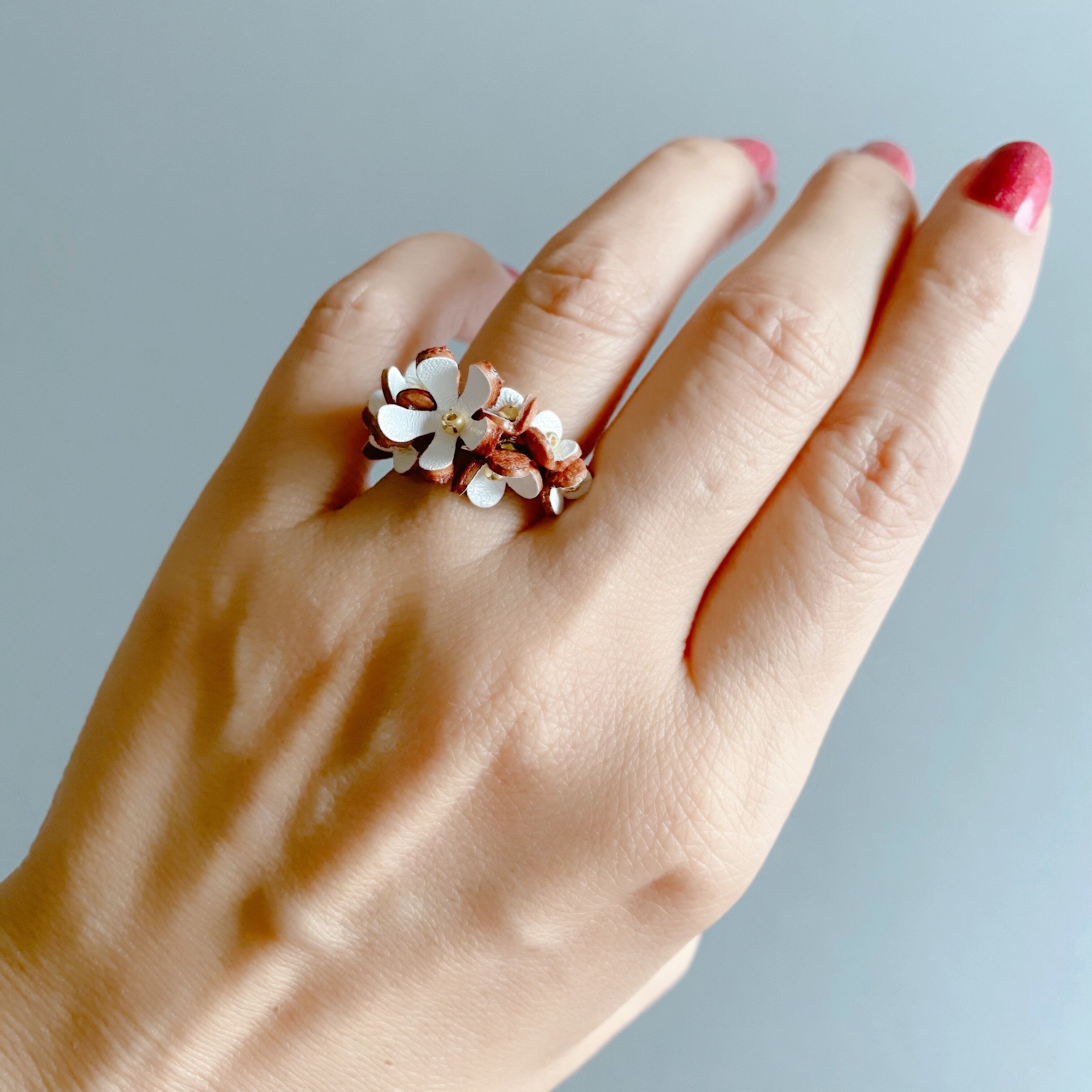 レザーフラワーのリングです。