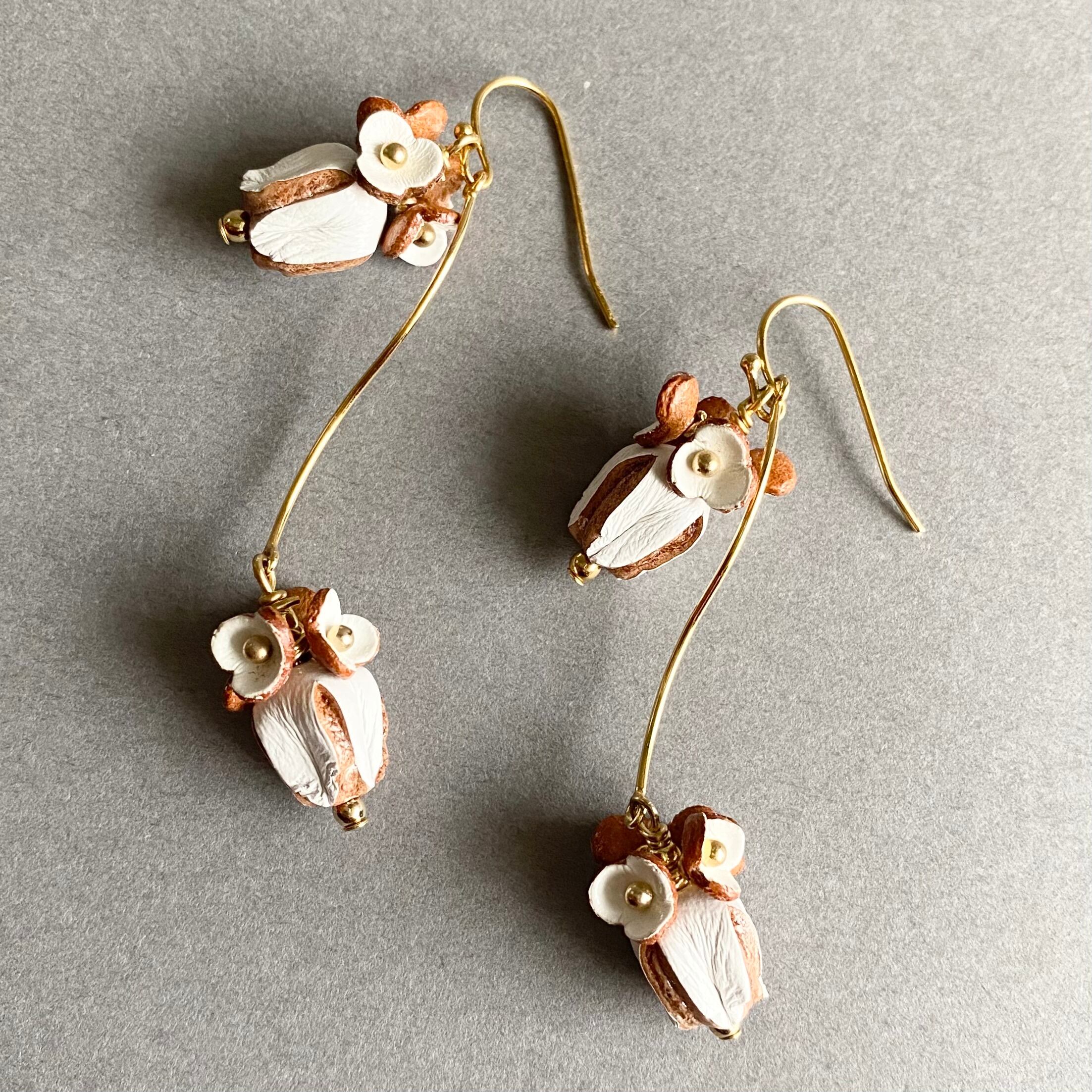 スズランの様な優美なデザインが特徴の軽量ピアスです。白と黒のツートーンカラーで、どんなコーディネートにも合わせやすいアイテムです。1つ1つ職人の手で作り上げた、繊細な細工が施された花のデザインは、見ているだけでも幸せな気持ちにさせてくれます。